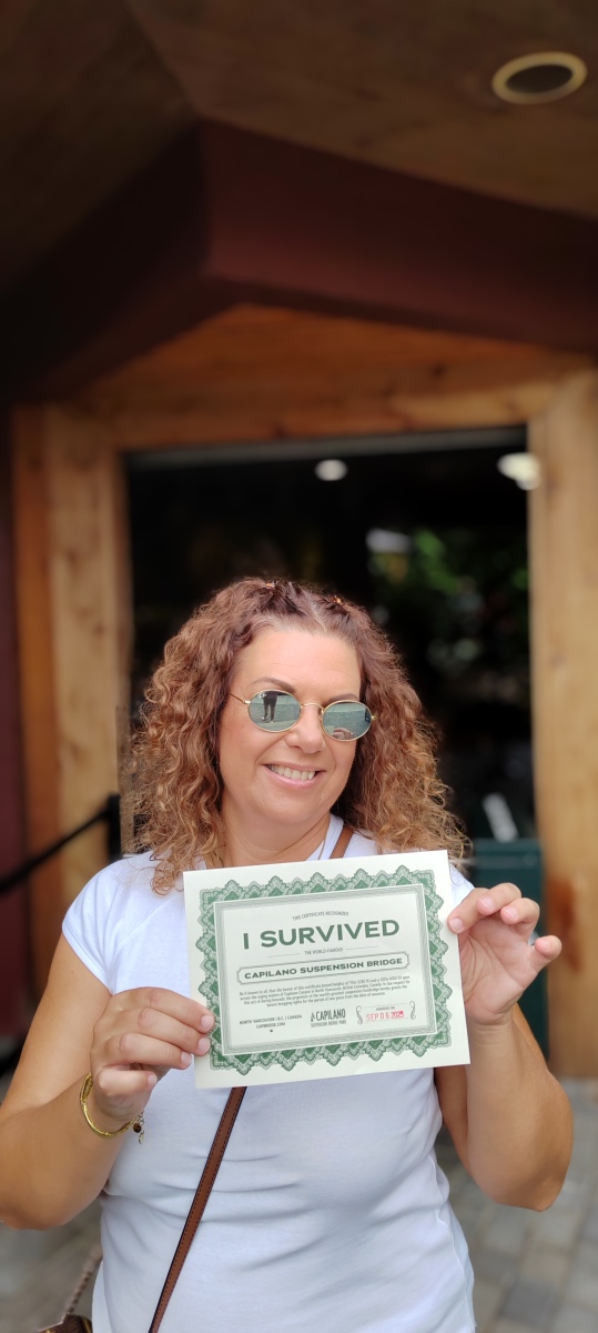 Preživjeli smo prelazak preko visećeg mosta u parku Capilano i za to dobili certifikat.